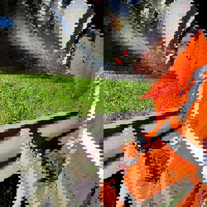 Zodra de weg volledig is afgesloten en we groen licht krijgen, gaan we aan de slag,” vertelt Ed. “Onze eerste stap is het demonteren en afvoeren van de oude geleiderail. Een goede afstemming tussen alle betrokken aannemers is cruciaal om in de beginfase geen kostbare tijd te verliezen. Dit is echt maatwerk,” voegt Ed toe terwijl hij zijn helm rechtzet.